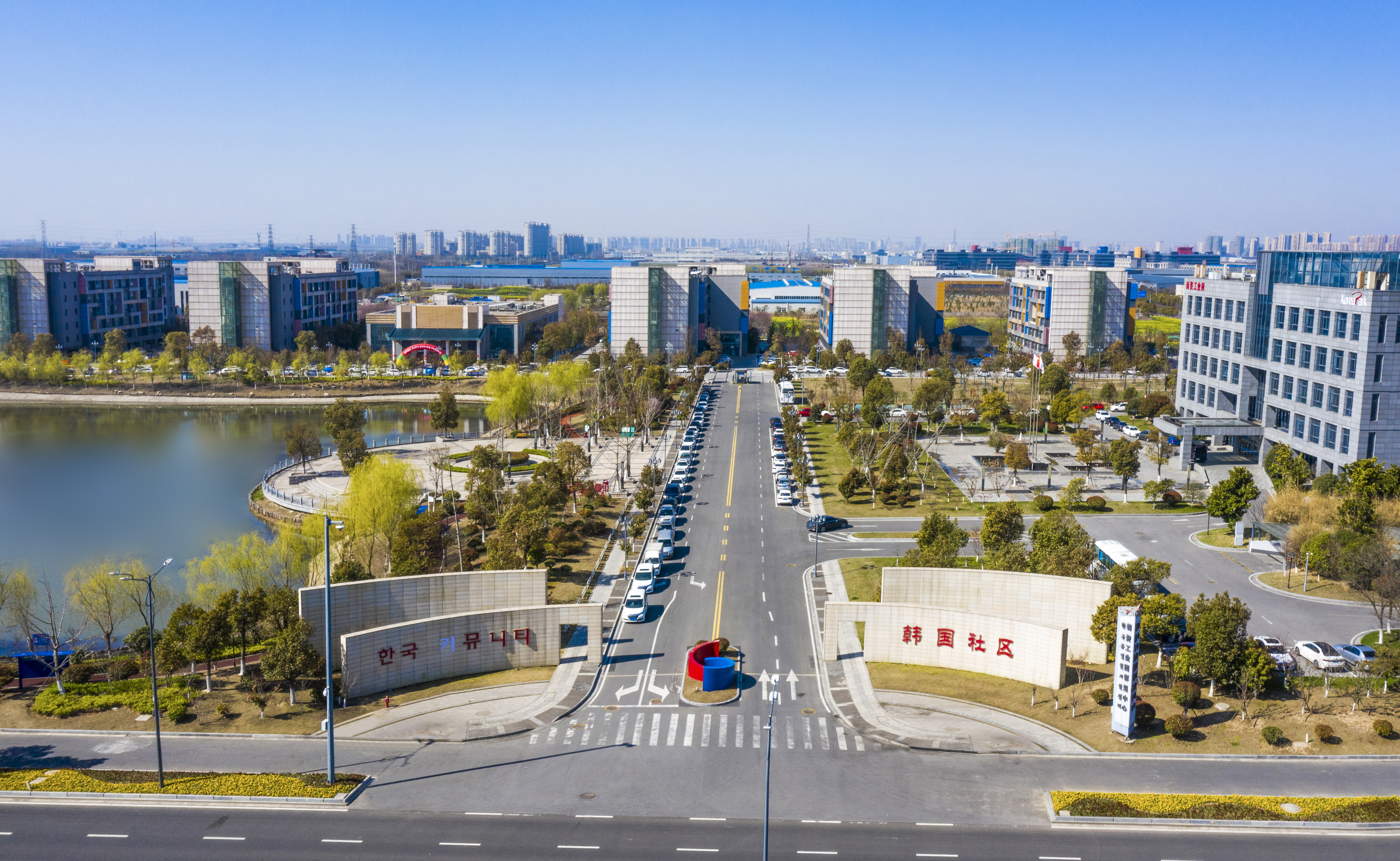 韓國社區(qū)占地面積148.6畝,是一個集中為入園韓企管理人員、職工提供公共租賃房居住、生活服務(wù)、商務(wù)辦公、休閑等韓國特色的國際化社區(qū)。規(guī)劃建設(shè)鄰里中心、公寓樓、韓資風(fēng)情園、商務(wù)大廈共11幢建筑,總建筑面積約13萬平方米。其中,國際一流水平、高仿真度的韓商服務(wù)鄰里中心2014年10月建成對外開放,建筑面積16839平方米,已有韓國餐飲、韓國超市、韓商金鑰匙之家、鹽城韓商會、韓國文化交流中心等專業(yè)服務(wù)機(jī)構(gòu)入駐,主要為入園企業(yè)及員工提供特色餐飲、韓式超市、健身娛樂、醫(yī)療衛(wèi)生、通訊網(wǎng)點(diǎn)、快遞物流、政務(wù)服務(wù)、企業(yè)招聘等服務(wù)。目前已有睿合博世孵化器、盛珍科貿(mào)、NSOFT、莫特雷克斯、納達(dá)軟件等20家企業(yè),200多名員工入駐。公寓樓6幢,面積67746平方米,一期3幢公寓已迎來首批入園企業(yè)員工入駐使用,將為6000名入園企業(yè)高層管理人員及產(chǎn)業(yè)工人提供公寓住宿服務(wù)。韓國風(fēng)情園1幢,面積7193平方米,2017年初投入使用,主要提供特色餐飲、臺球、網(wǎng)咖、汗蒸房等休閑娛樂服務(wù)。