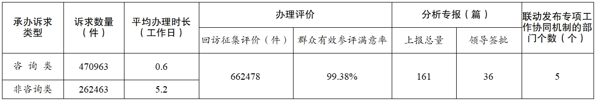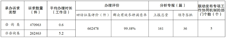 5.12345與110協(xié)同聯(lián)動。進一步提升12345熱線與110報警服務(wù)臺協(xié)同聯(lián)動處置效率,科學合理分流59102件非警務(wù)求助、快速有效處置6850件突發(fā)警情,實現(xiàn)工單警單閉環(huán)處置,有效提升了“雙號”服務(wù)效能和訴求處置能力,為服務(wù)人民群眾、維護社會穩(wěn)定發(fā)揮了重要作用。